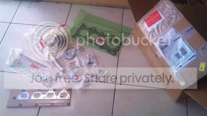 Finalmente depois de 3 longos meses de espera, as peças para o serviço de "sede de válvulas" chegaram, pela segunda vez e definitivo! Já que a primeira encomenda simplesmente desapareceu entre o estado do RJ e o meu...(mais uma vez os correios deixou alguem extraviar e desaparecer com a caixa) Todo aquele stress de abrir reclamação nos correios... avisar ao vendedor que deu problema e bla bla bla em fim chegou outra.
