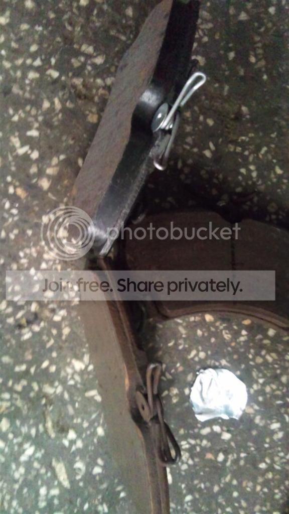 Ao checar a linha de freio, burrinho, tambor também olhei as pastilhas e sapatas e os discos... acabei substituíndo as pastilhas. (acima a nova e abaixo a usada).