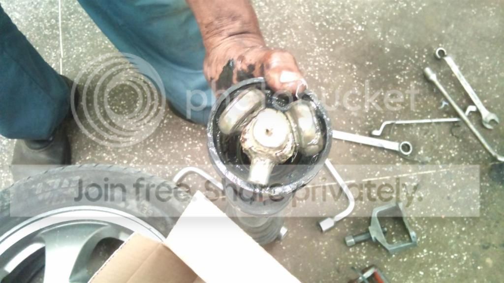 Detalhe é que não conseguimos desmontar a homoçonética na ponta para colocar as novas coifas... a solução foi puxar o braço inteiro, tudo! Lá da tulipa que tava mais fácil desmontar, por outro lado foi bom que verificou o estado dos rolamentos, retirados e conferidos um a um.